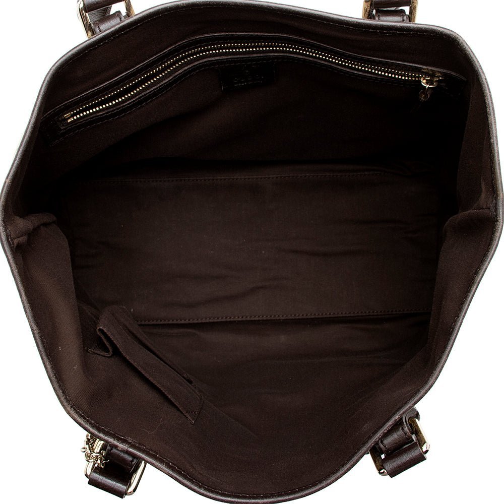 The Gucci GG Canvas Jolicoeur Medium Tote is a refined expression of everyday luxury. Crafted from Gucci’s iconic GG canvas and complemented by smooth leather accents, this tote showcases a timeless silhouette that blends elegance with practicality. The open-top design offers easy access, while the spacious, fabric-lined interior provides ample room for daily essentials. A charming Gucci accent adds a signature finishing touch, enhancing the bag’s sophisticated appeal.