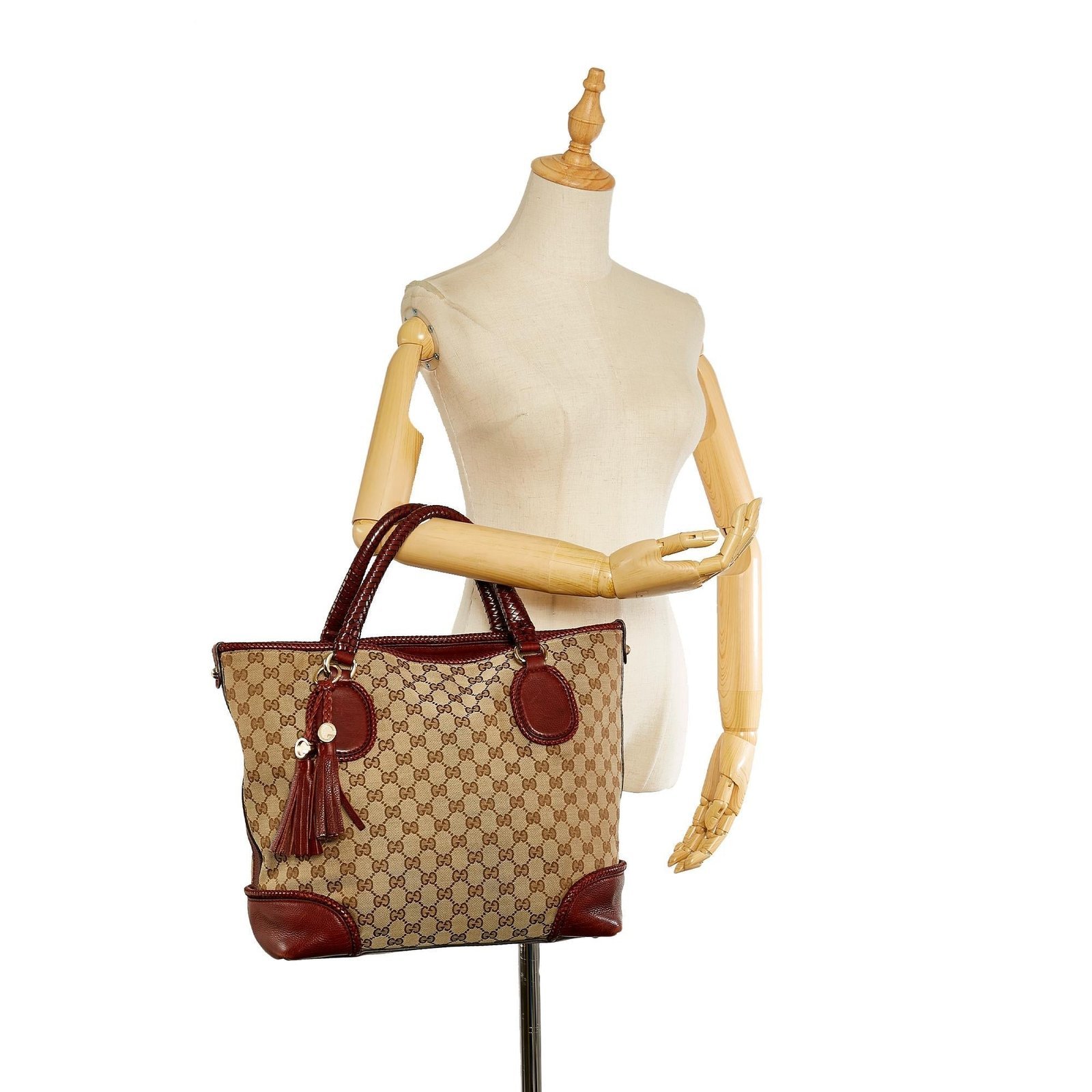 • Braided leather handle detail with tassel accent