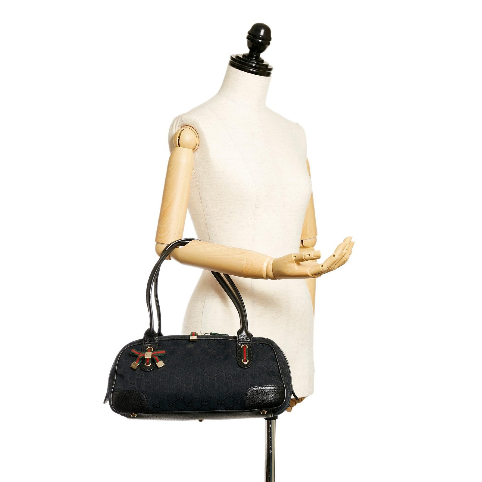 - Signature black GG canvas exterior with leather and calfskin accents
