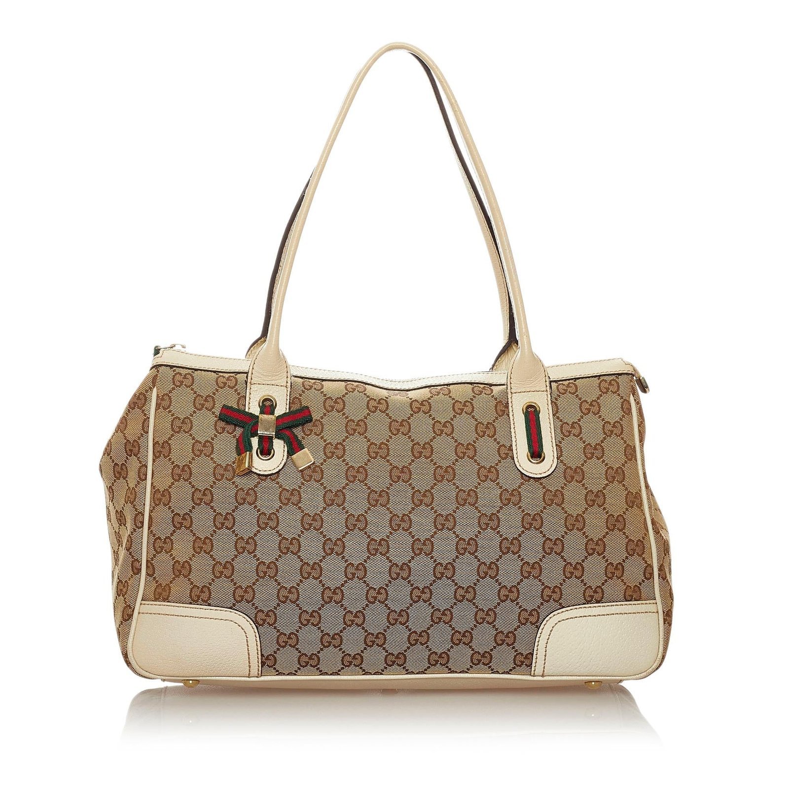 The Gucci GG Canvas Princy Tote Bag is a sophisticated and versatile accessory that reflects Gucci’s timeless elegance. Crafted from signature canvas with leather accents in a refined combination of brown, white, beige, and ivory, this tote features rolled leather straps, an open top with a snap button closure, and interior zip and slip pockets for organized essentials. Its structured yet elegant silhouette makes it perfect for everyday wear or stylish outings, showcasing Gucci’s Italian craftsmanship and luxurious design.