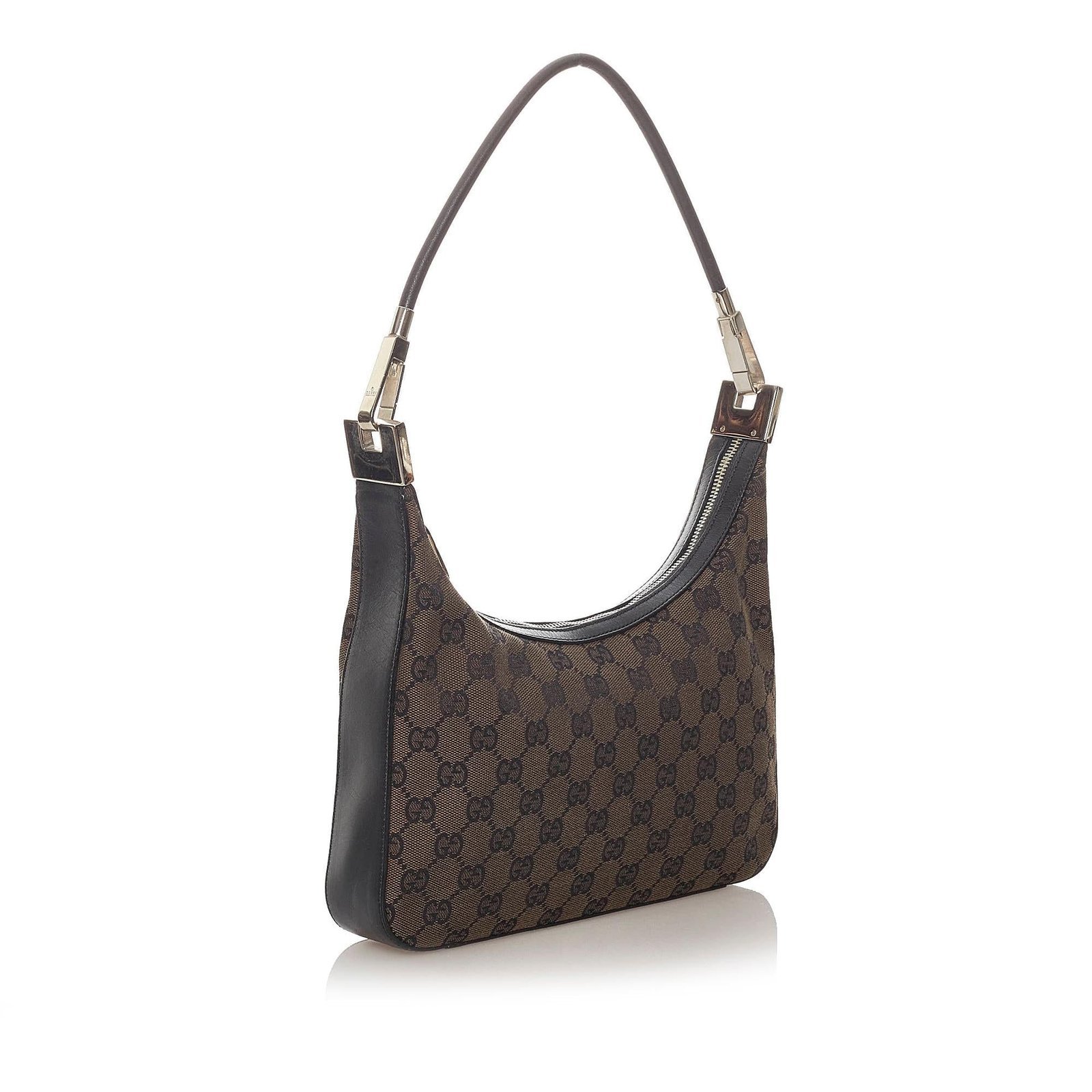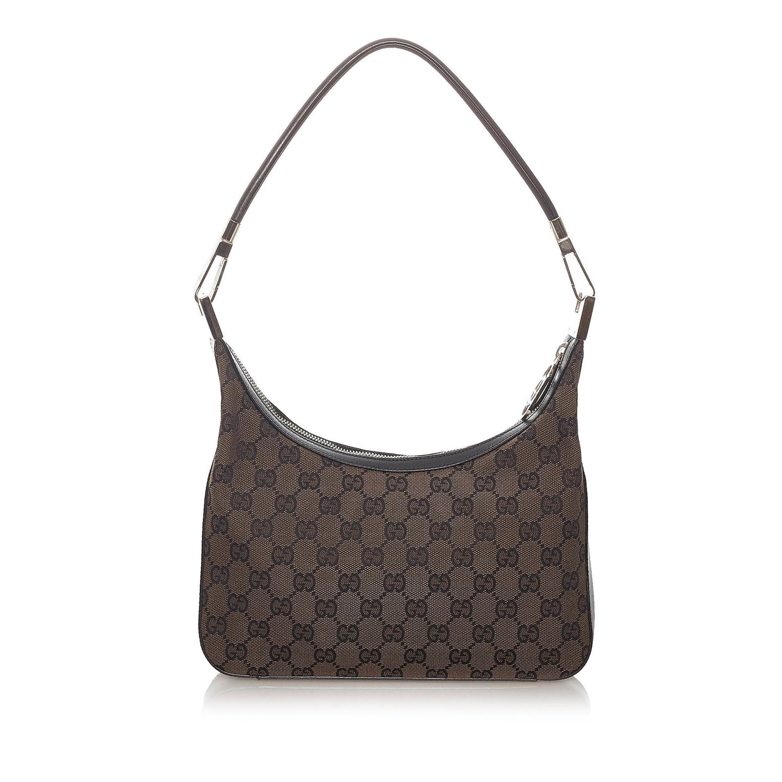 The Gucci GG Canvas Shoulder Bag is a timeless accessory that reflects Gucci’s iconic design and Italian craftsmanship. Crafted from signature GG canvas in rich brown tones with leather and calfskin accents, this shoulder bag features a sleek silhouette for versatile everyday wear. The flat leather shoulder strap provides comfortable carry, while the top zip closure opens to a well organized interior with a zip pocket for convenience. Elegant and functional, this piece embodies understated luxury.