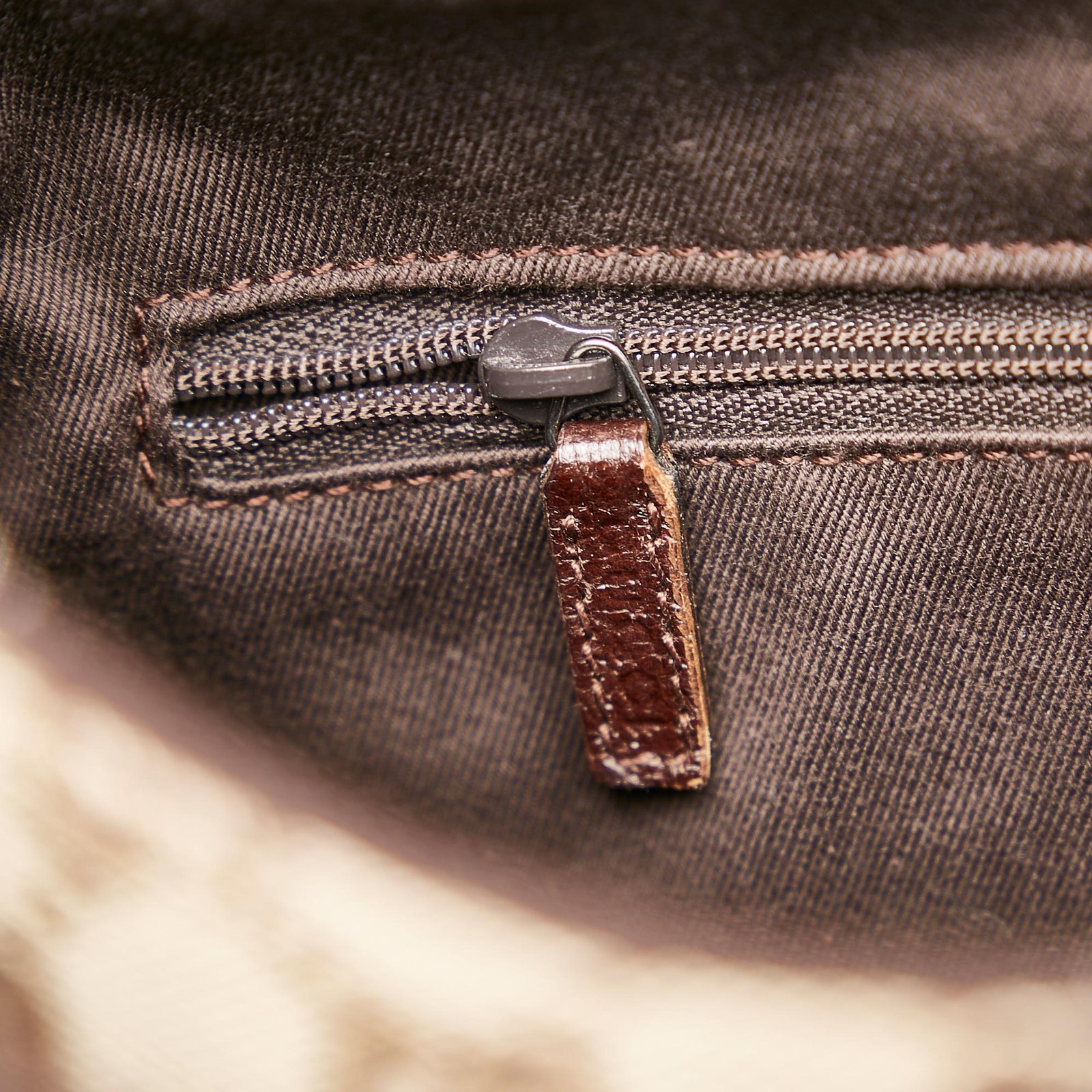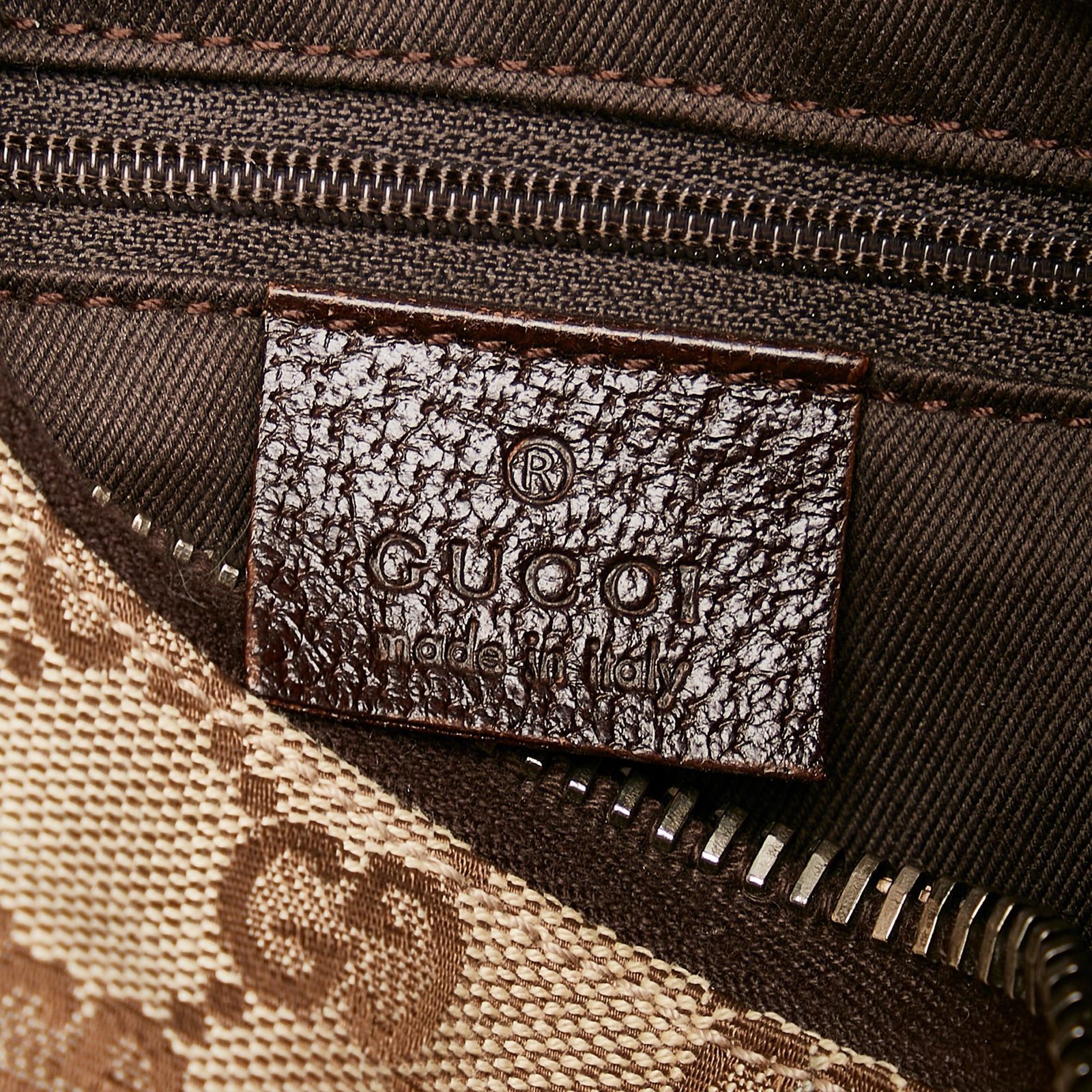 • Signature GG canvas exterior in brown tones with leather and calfskin accents