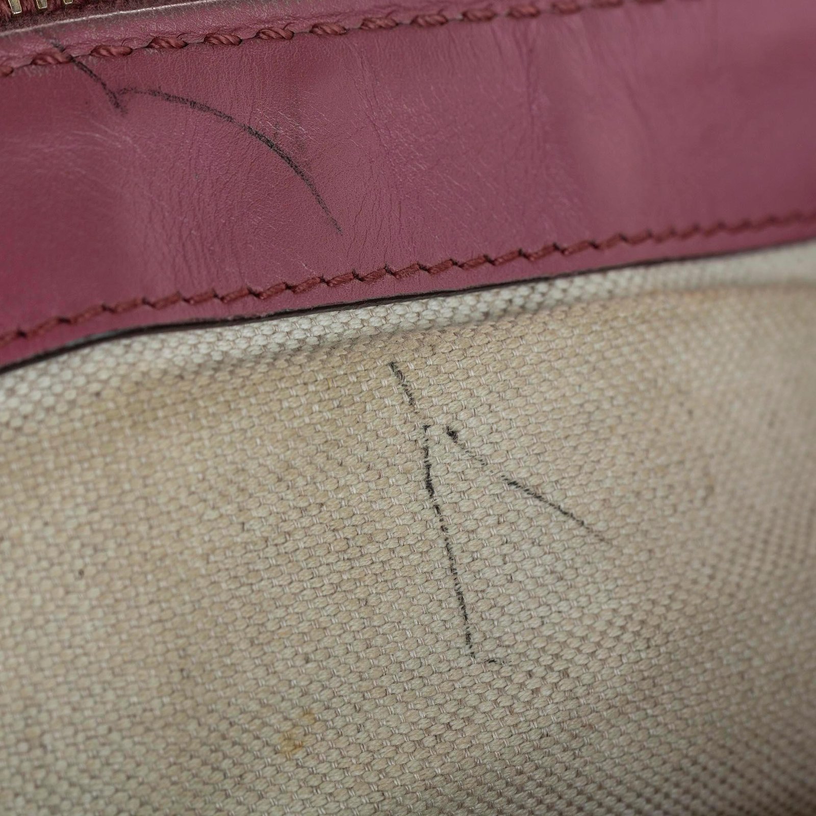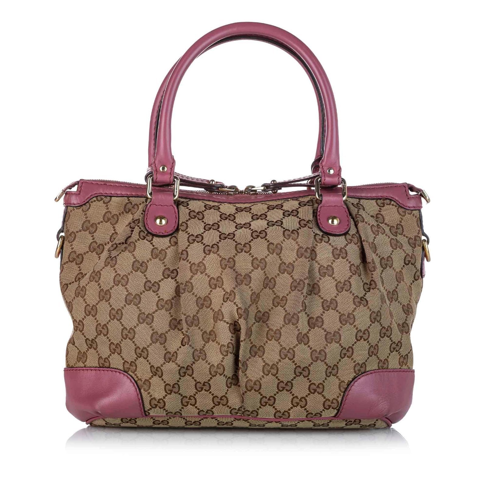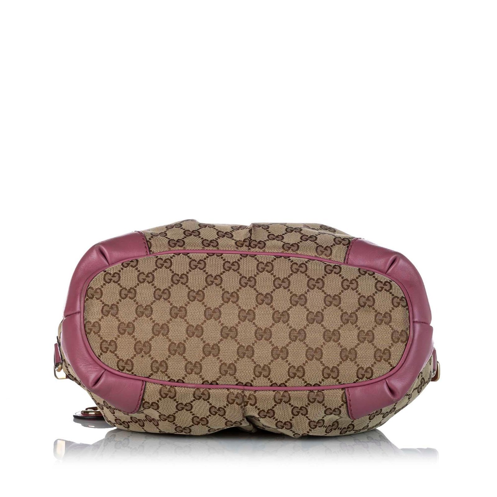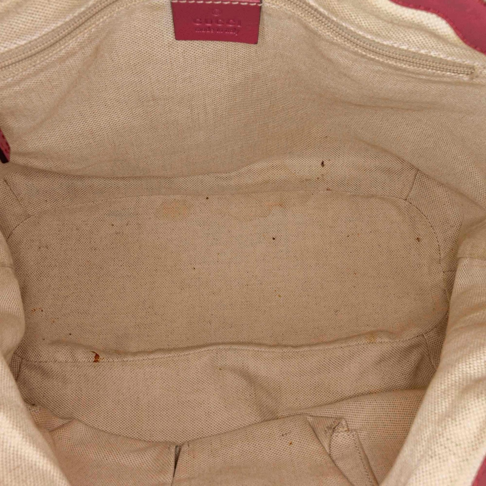 - Signature GG canvas exterior in brown, beige, and pink tones with leather and calfskin accents