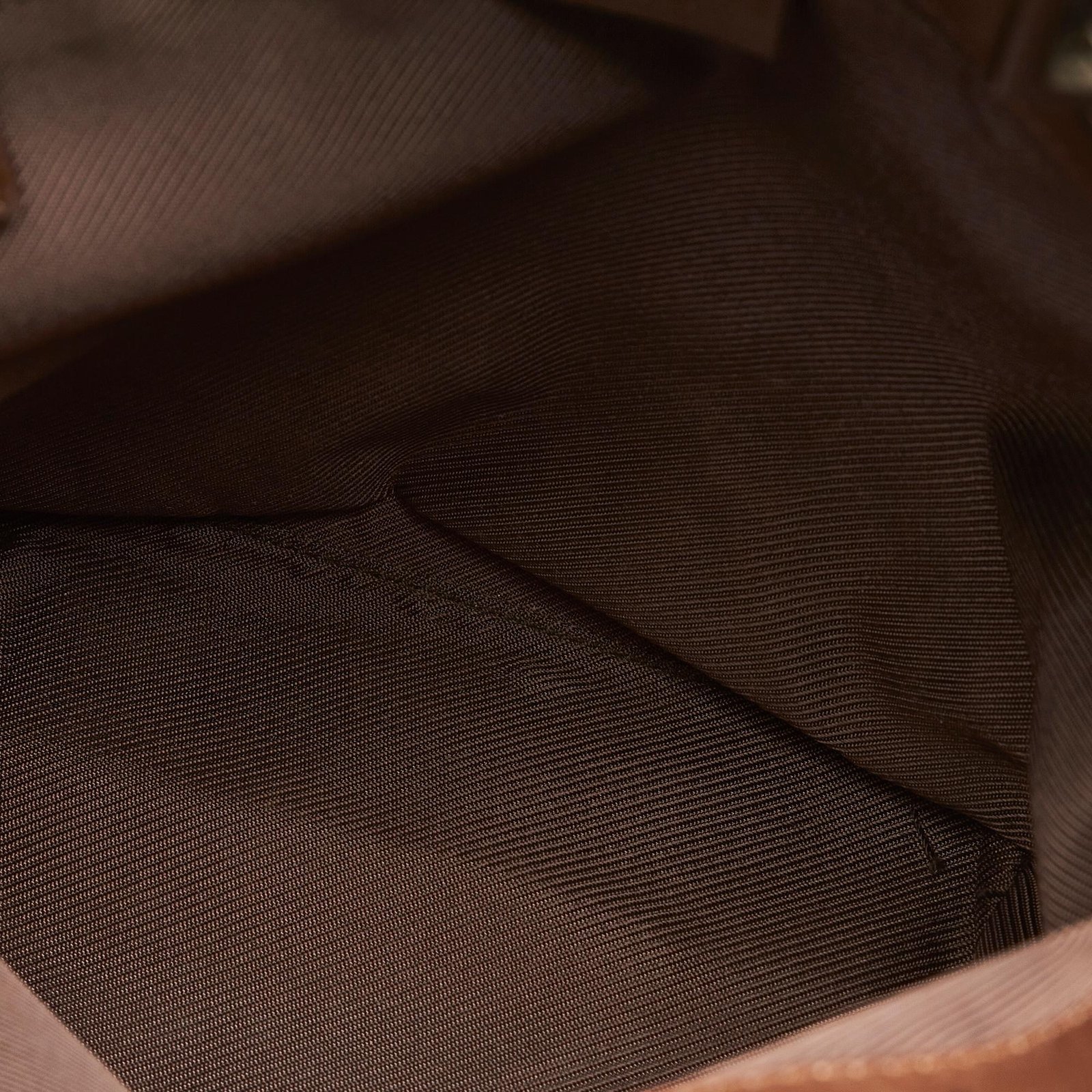 • Signature GG canvas exterior in rich brown tones with leather trim