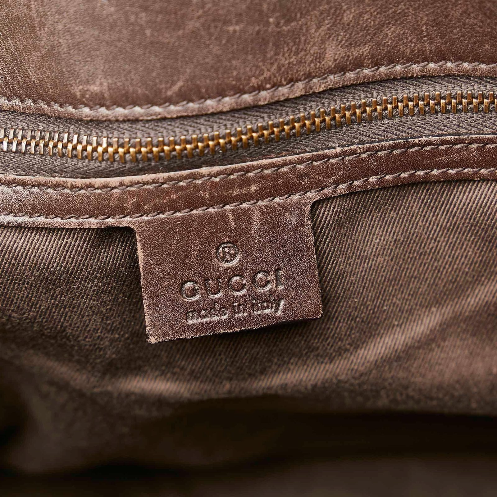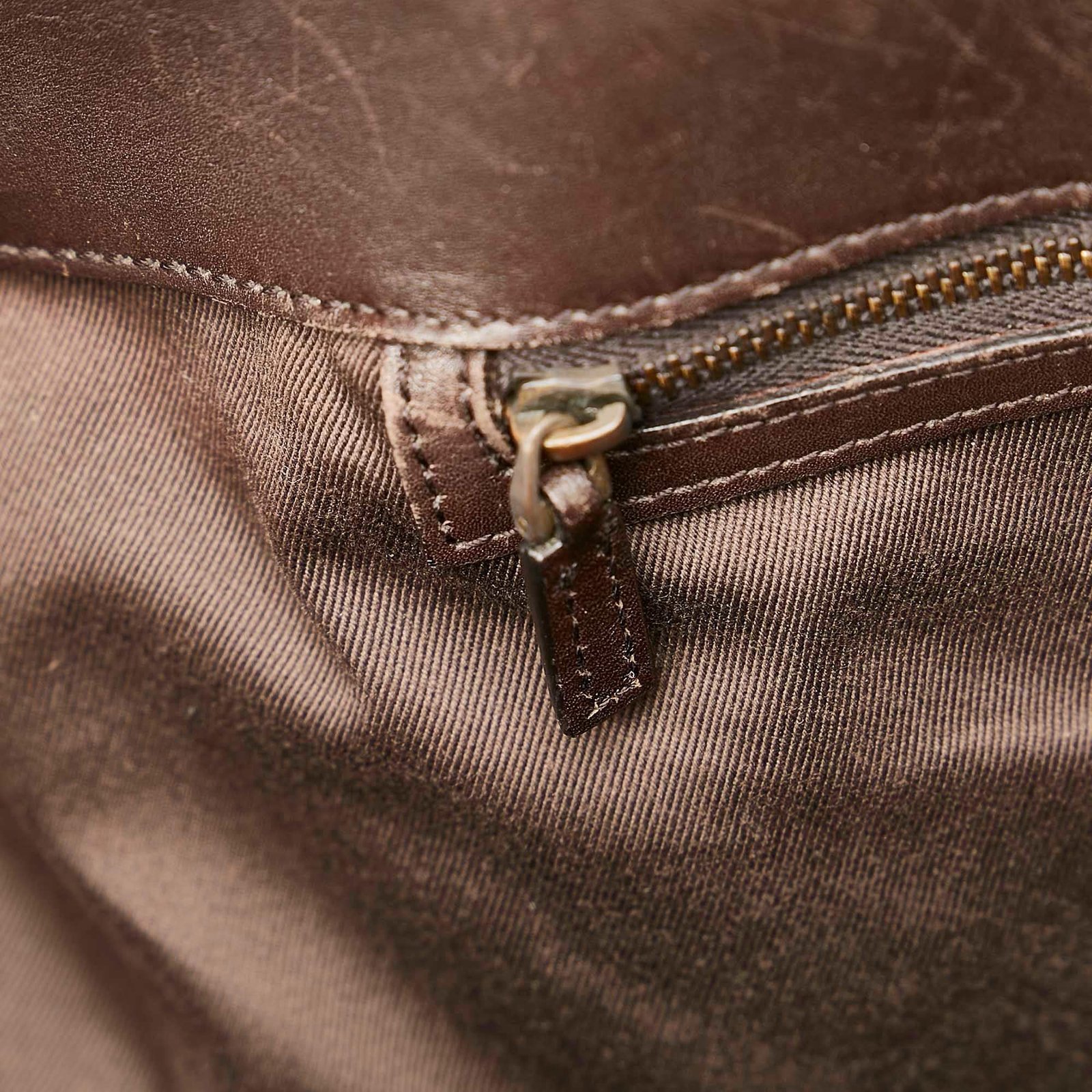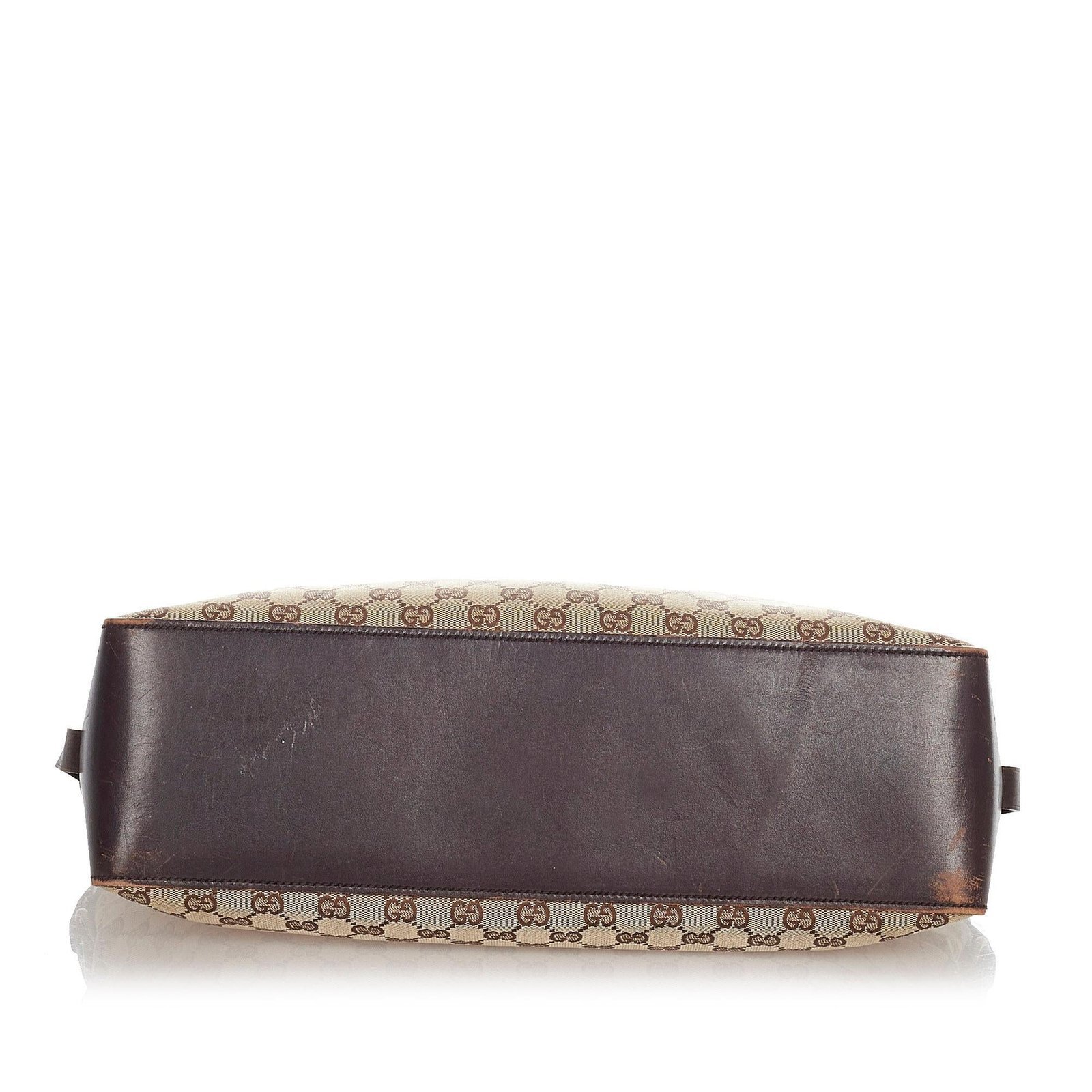 - Signature GG canvas exterior in brown, beige, and dark brown tones with leather and calfskin accents