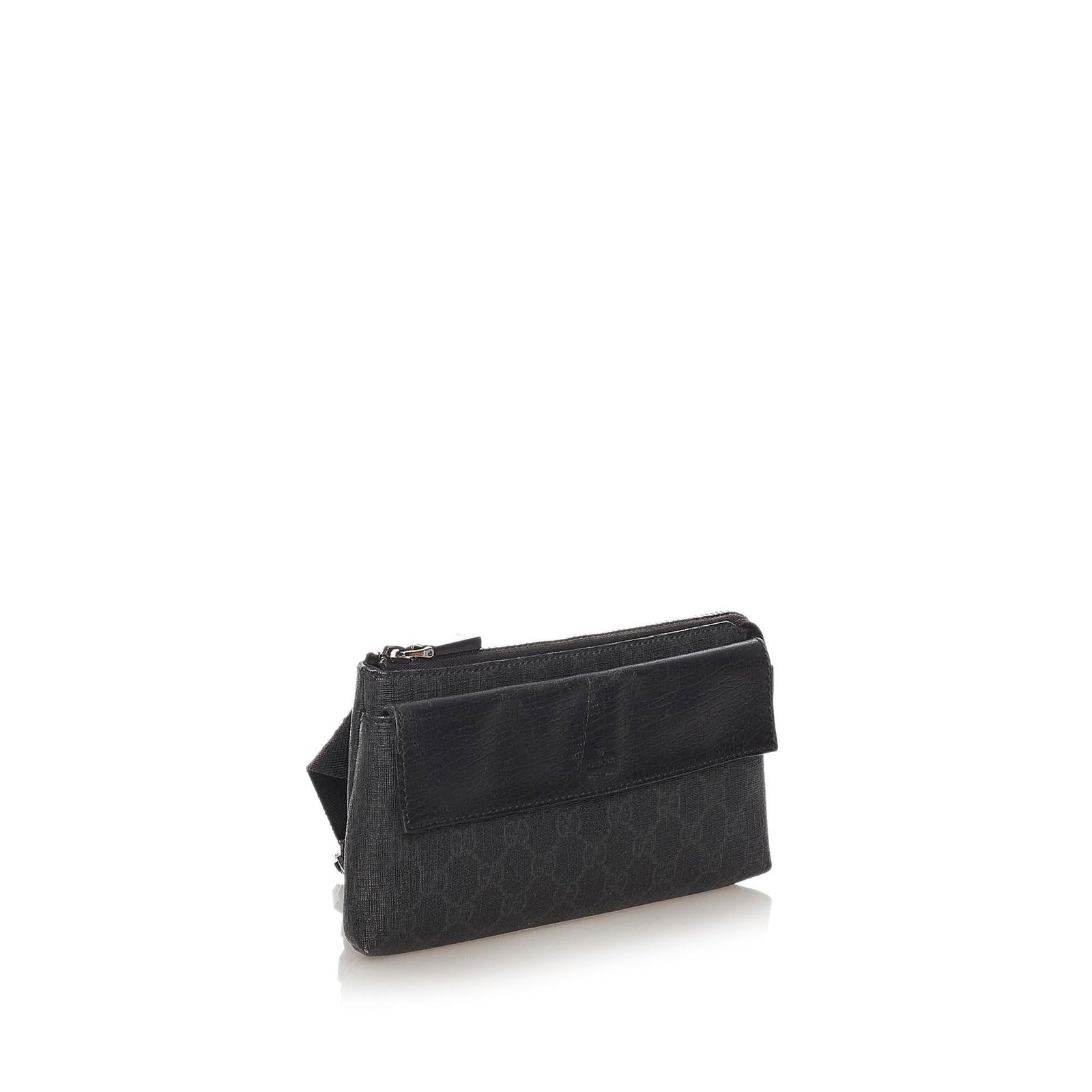 The Gucci GG Supreme Belt Bag combines Gucci’s signature craftsmanship with a sleek, hands-free design. Crafted from coated canvas with leather and calf accents, the Gucci GG Supreme Belt Bag features a flat waist strap, exterior front flap pocket, and top zip closure for secure and organized storage. Designed in classic Black, it offers a polished and versatile accessory for daily use or travel. Made in Italy, this belt bag reflects the House’s commitment to luxury and functional design.