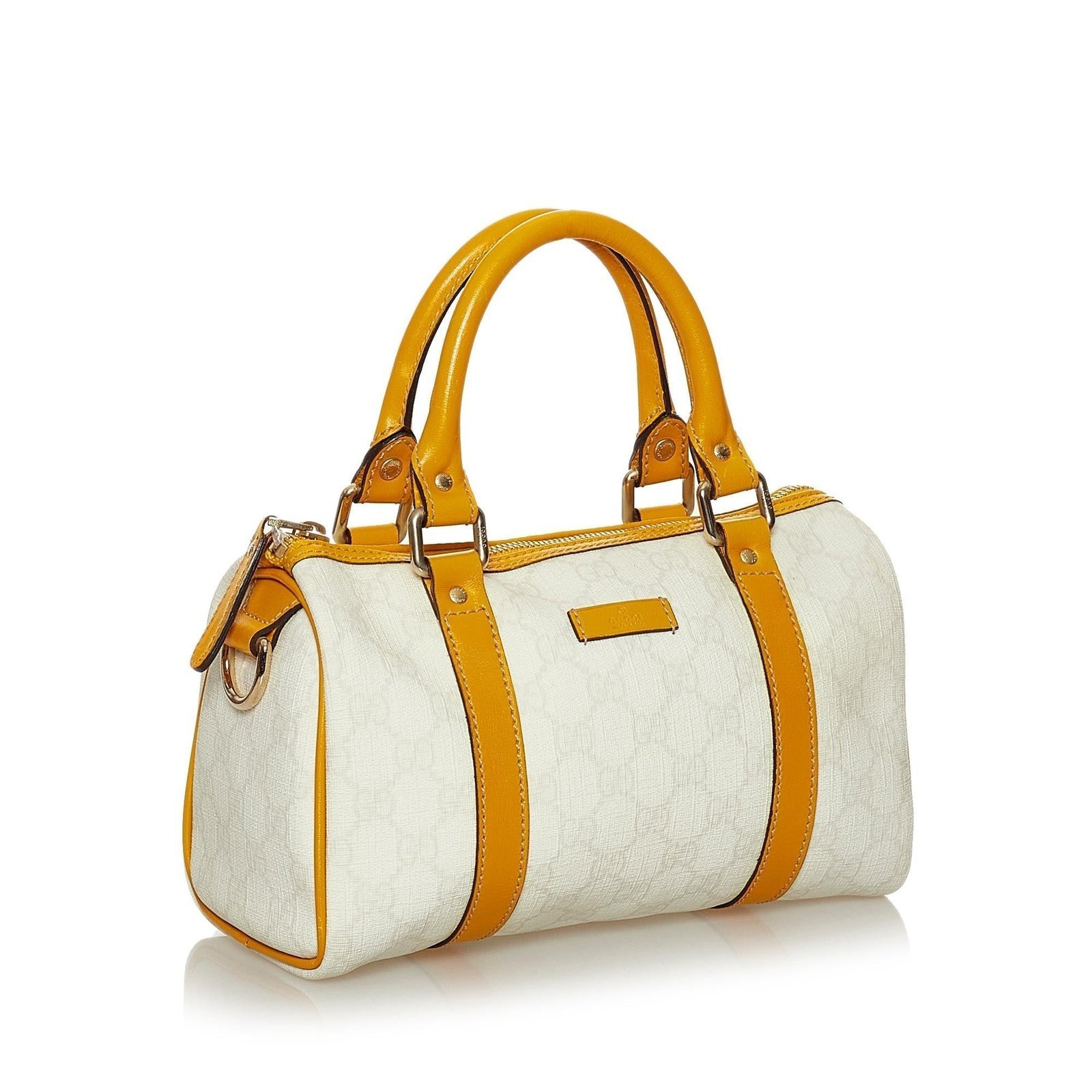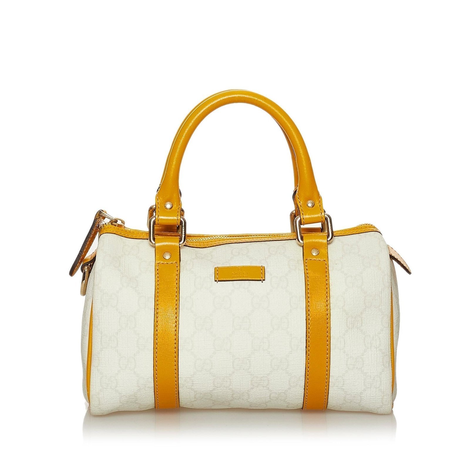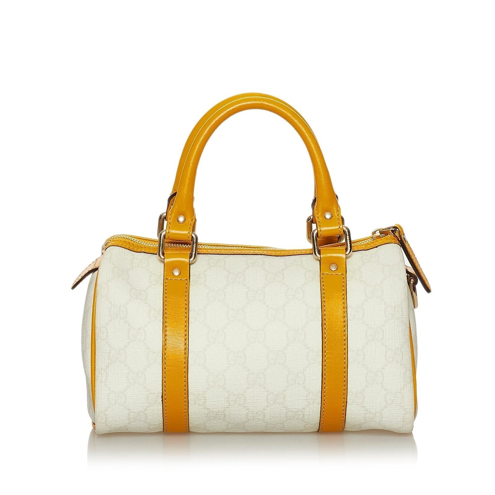 The Gucci GG Supreme Joy Boston Bag is a chic and versatile accessory, crafted from iconic GG Supreme coated canvas with leather trim. Its rolled leather handles and top zip closure ensure easy and secure carry, while the interior slip pocket keeps essentials organized.