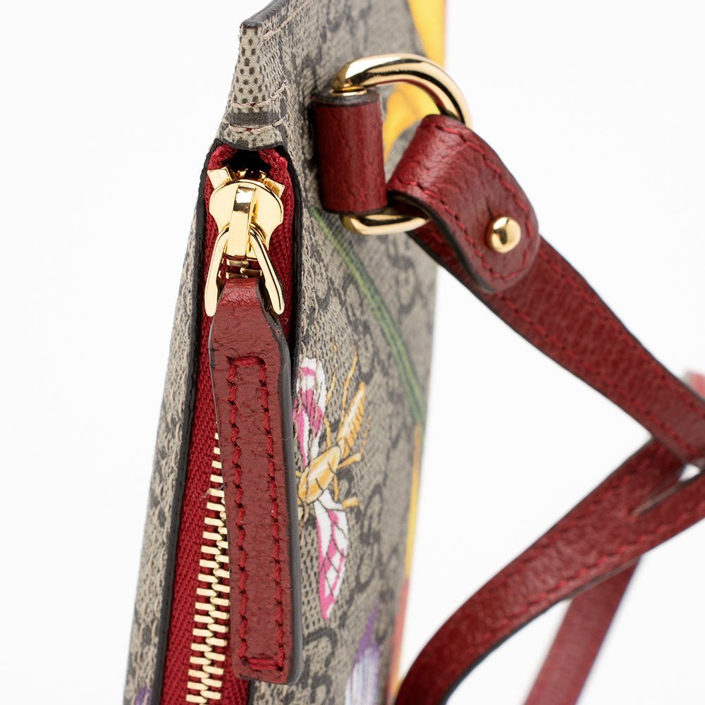 Add a pop of Gucci flair with this Ophidia Flora Pochette, featuring the iconic GG Supreme coated canvas adorned with the vibrant floral motif and leather trim. Gold-tone hardware and a top zip closure complete the elegant design, while a detachable handle offers versatile carry options.