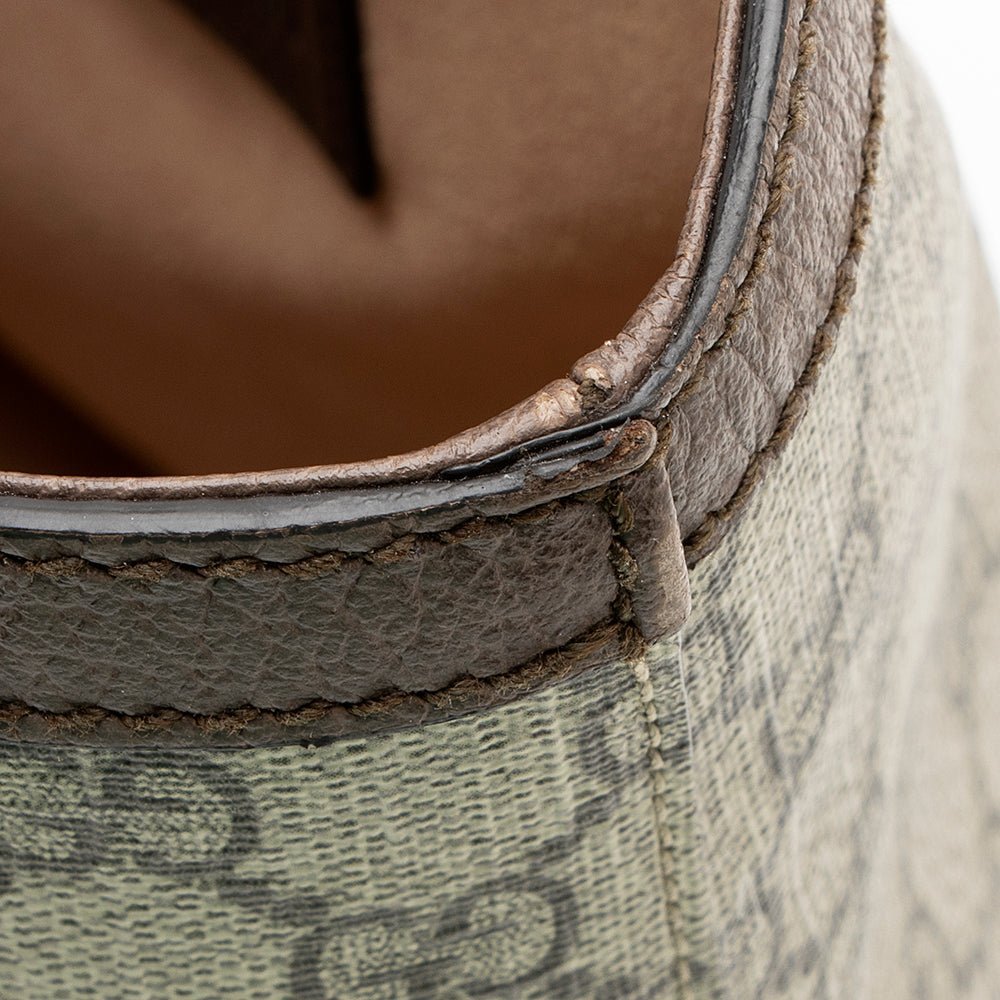 The Ophidia collection evokes the House’s heritage with the signature Web stripe and Double G emblem in light gold-toned finish. The styles are crafted from soft GG Monogram coated fabric, featuring green cotton lining inside.