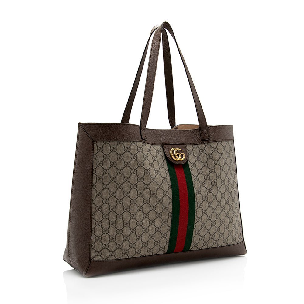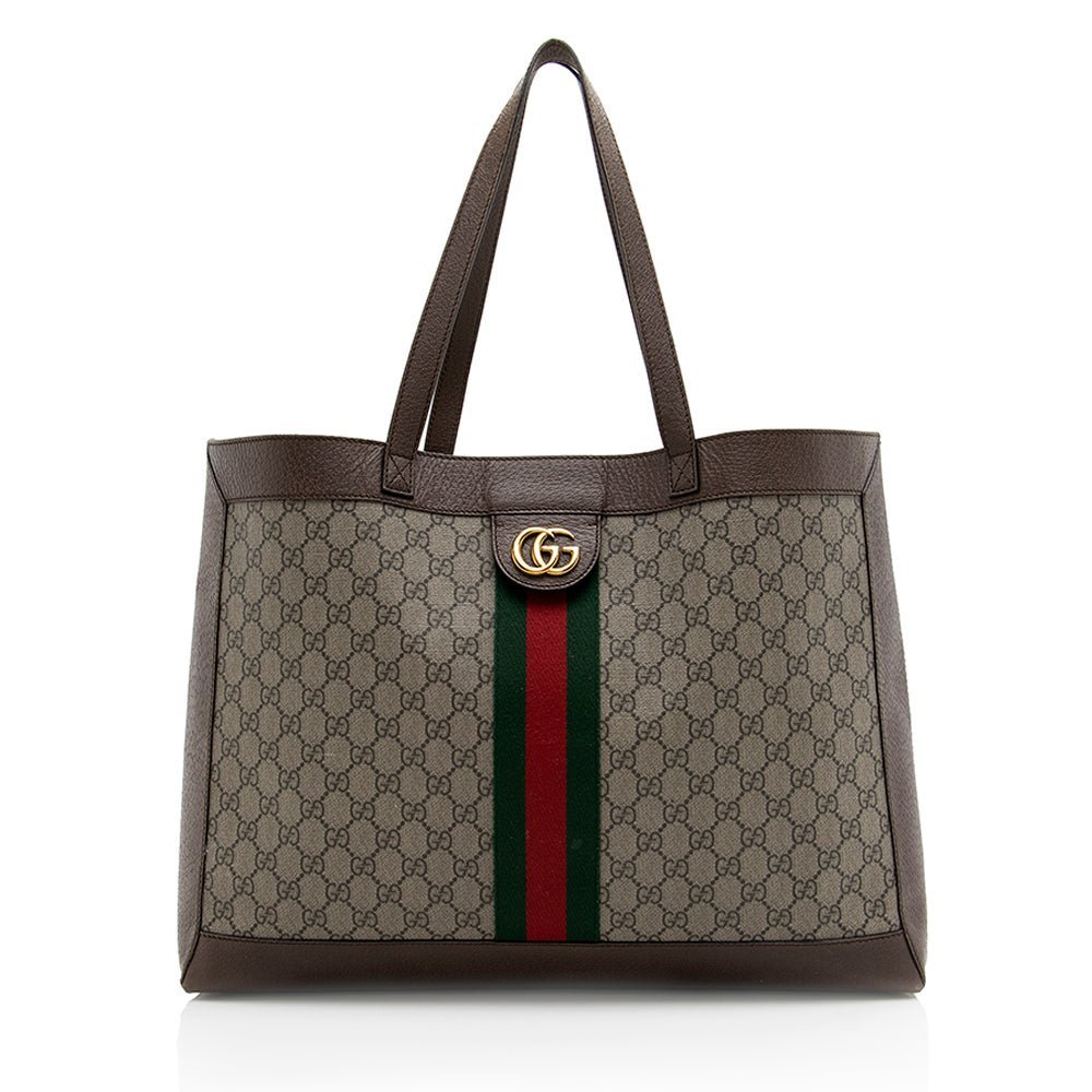 The Ophidia collection evokes the House’s heritage with the signature Web stripe and Double G emblem in light gold-toned finish. The styles are crafted from soft GG Monogram coated fabric, featuring green cotton lining inside.
