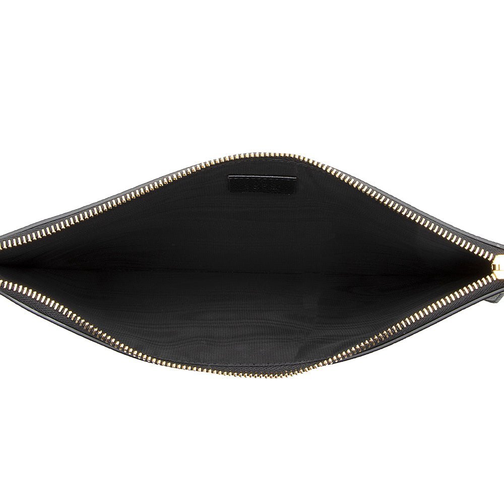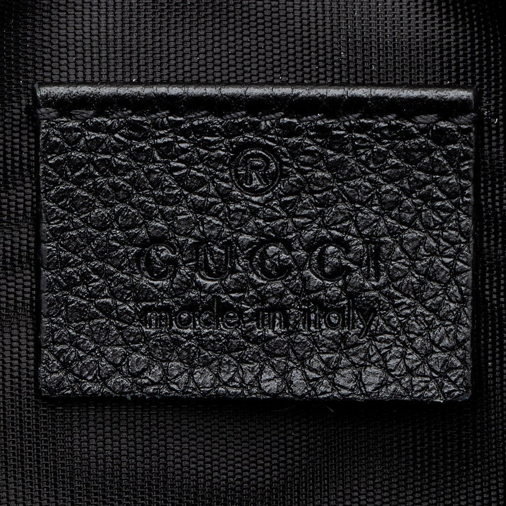 The Gucci Grained Leather Zumi Pouch is a sleek and elegant accessory that combines timeless design with functional versatility. Crafted from luxurious black grained leather, this pouch features a top zip closure for secure storage and a minimalist silhouette perfect for everyday use or special occasions.