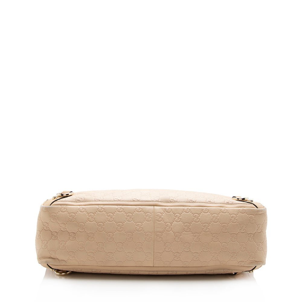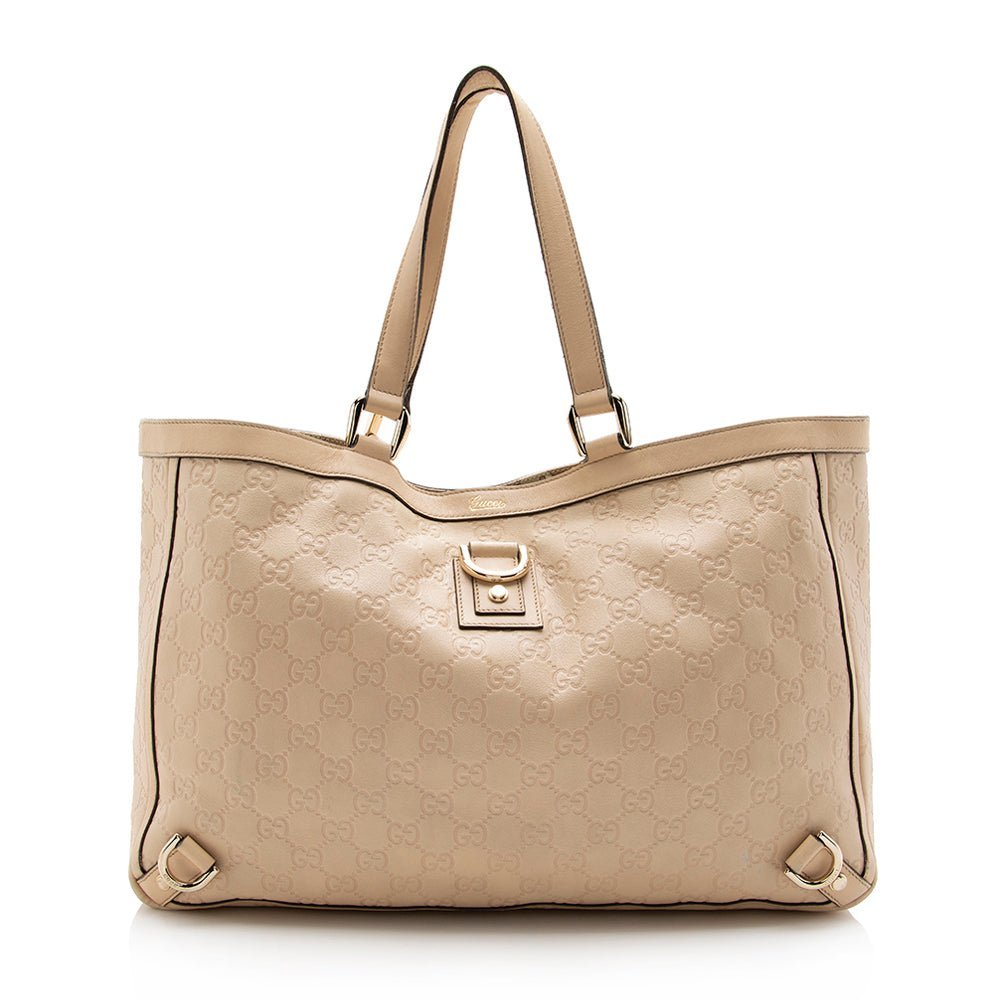 The Gucci Guccisima Leather Abbey Large Tote is a refined and versatile accessory that combines timeless design with everyday functionality. Crafted from embossed leather with calfskin accents, this tote features a sophisticated beige color, reflecting Gucci’s signature elegance.