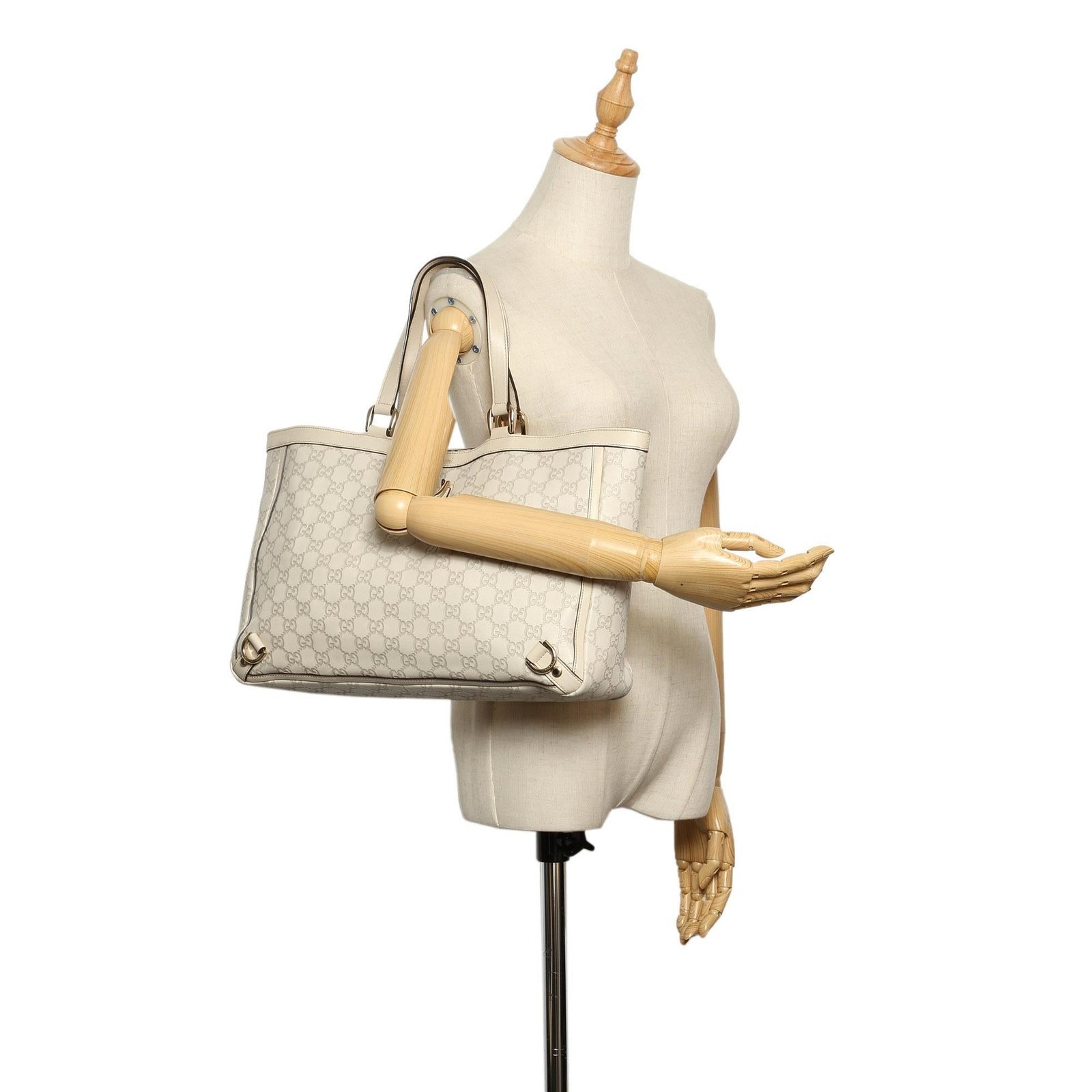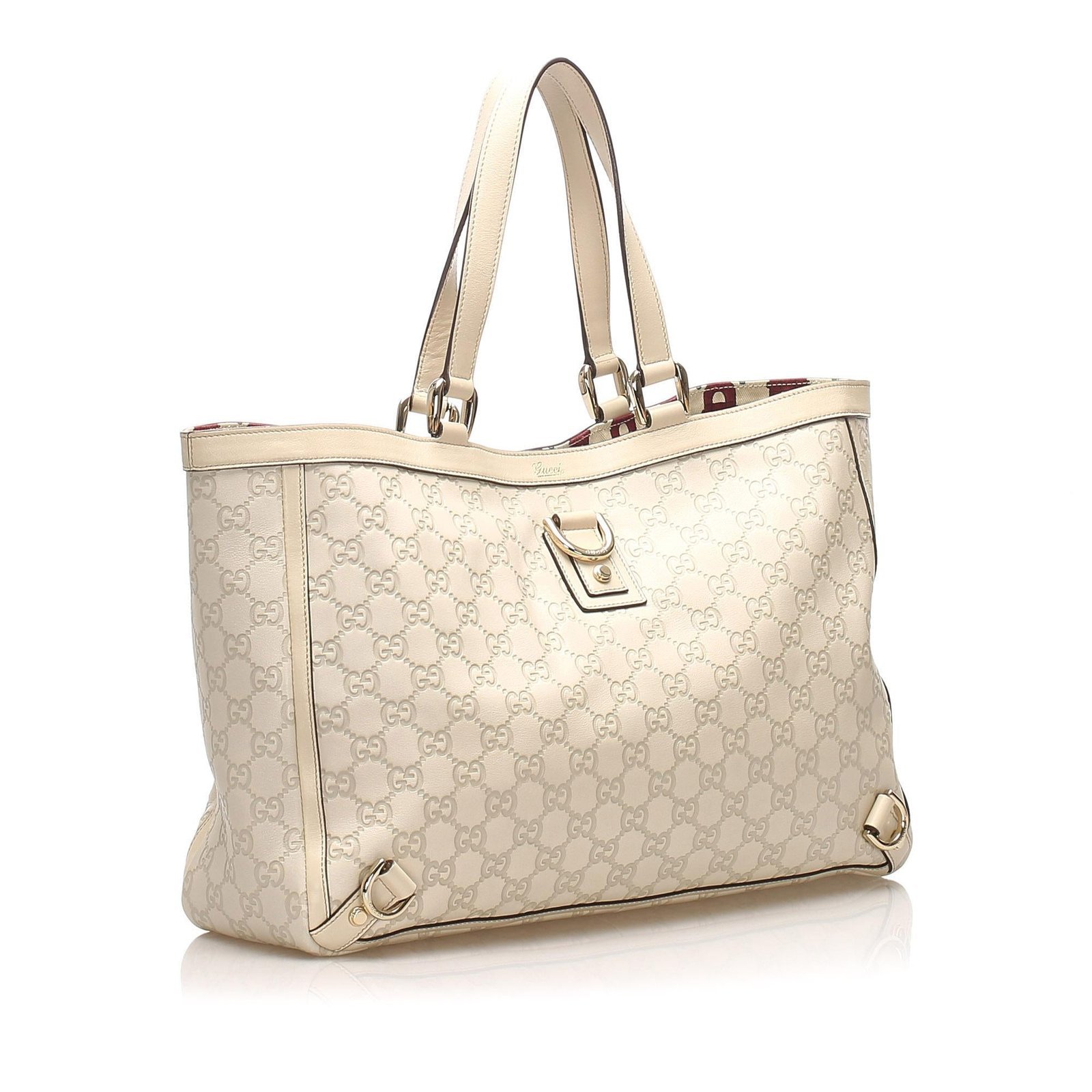 The Gucci Guccissima Abbey D-Ring Tote Bag is a refined and versatile accessory that blends timeless design with everyday functionality. Crafted from embossed leather with calfskin accents, this tote features a sophisticated white and ivory color palette, reflecting Gucci’s signature elegance.