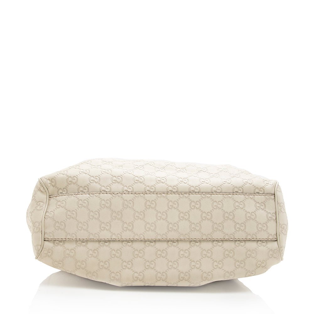 The Gucci Guccissima Leather Sukey Medium Tote is a timeless and sophisticated handbag designed for everyday elegance. Crafted in Italy from luxurious Guccissima embossed leather, this tote is presented in a refined white color that highlights its classic silhouette and iconic detailing.