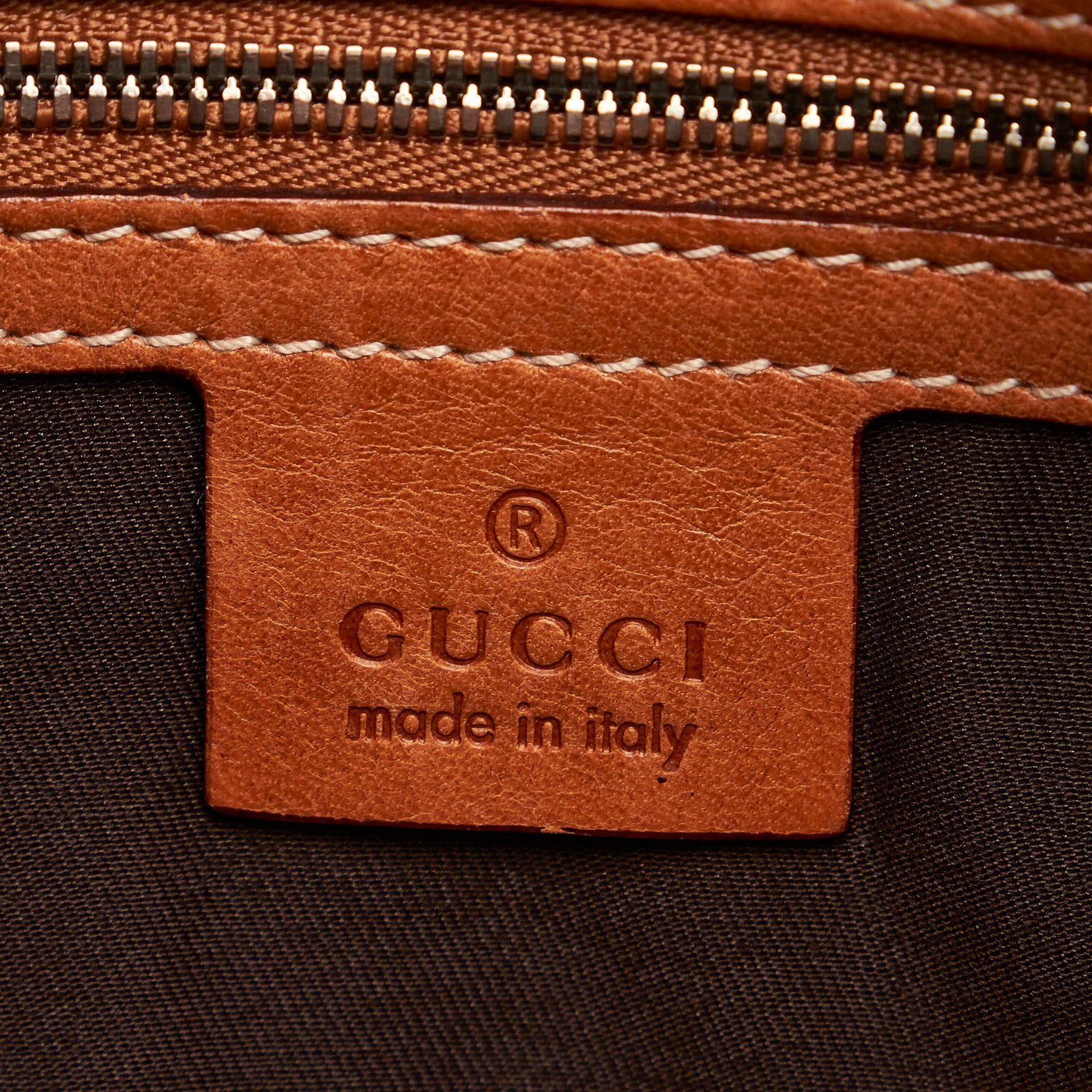 • Beige canvas exterior with leather trim