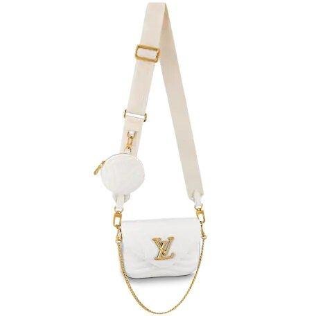 L.V introduces the versatile New Wave Multi-Pochette crossbody handbag in quilted calf leather-based. With its extensive strap, proposing an embroidered “L.V” signature, gold-colour chain for hand or quick shoulder carry, and spherical coin purse clipped on the strap’s snap hook, all detachable, it’s far the very definition of a flexible fashion accent.