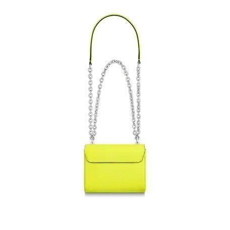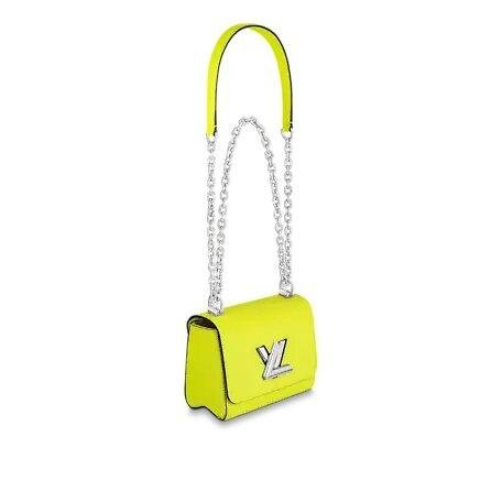 The Twist Mini handbag, with its contemporary interpretation of the traditional L.V Twist lock, is crafted from Epi grained leather with a sliding silver-tone chain. The new mini-version of the long-lasting Twist layout is perfect for a day-to-night use. Its ingeniously designed “wave” base expands to save more requirements.