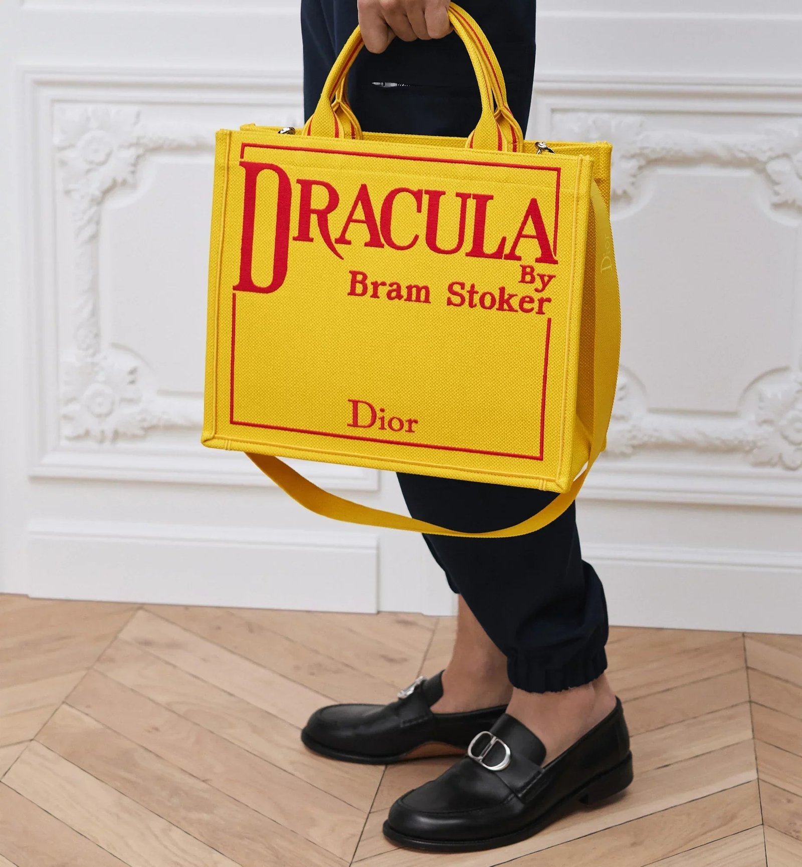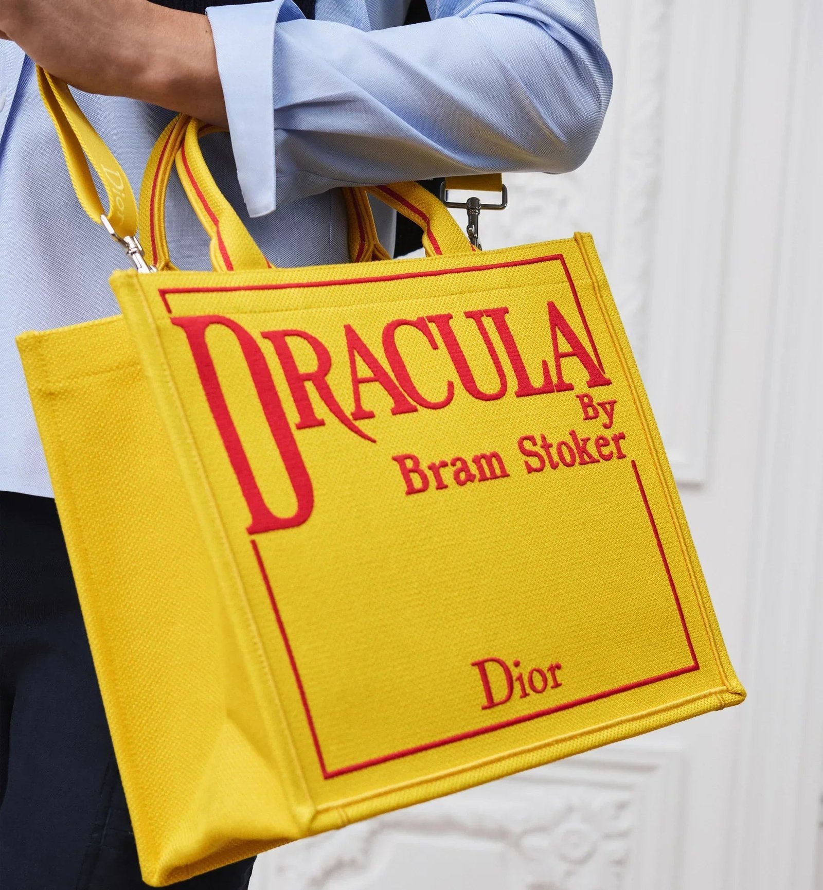 The hallmark Dior Book Tote takes its place in Jonathan Anderson’s dream library, showcasing a first edition cover of Dracula, by Bram Stoker™. The medium style offers a practical design that can be carried by hand, worn over the shoulder or crossbody.