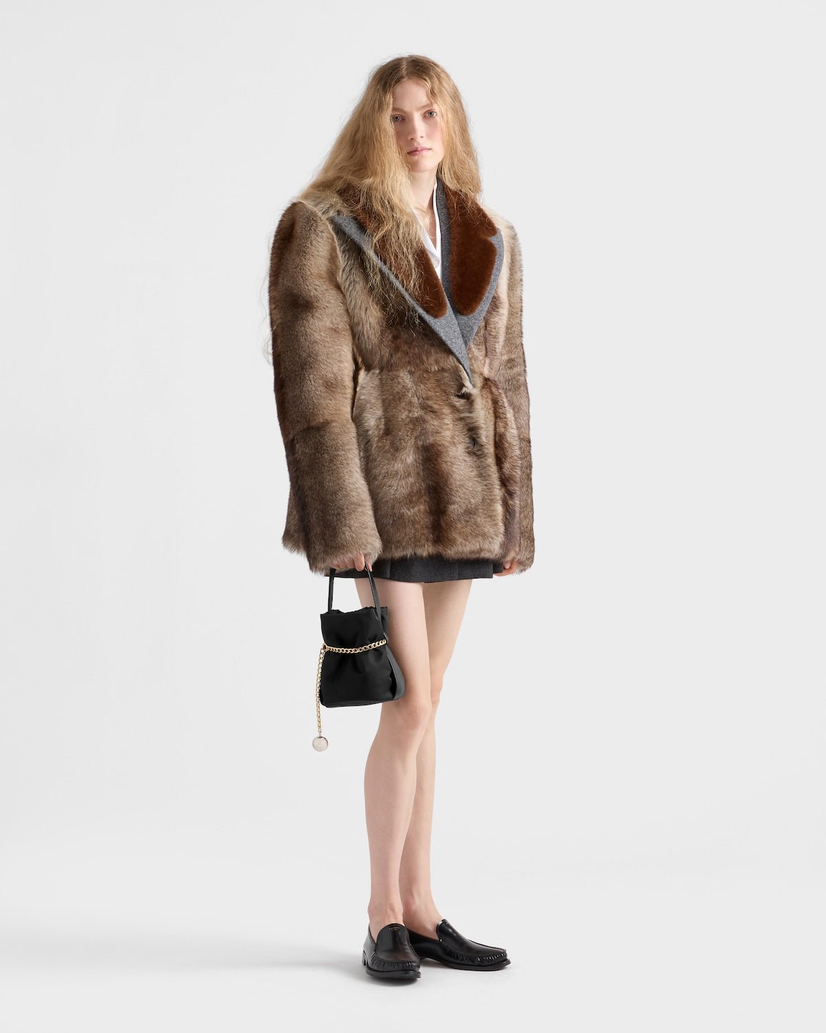 A sophisticated and contemporary identity characterizes this bucket bag with a soft silhouette crafted in Re-Nylon framed by a leather handle. The sleek simplicity of the design dialogues with macro details like the chain with spherical pendant that gives a refined and distinctive character. For sustainable care to preserve the product’s characteristics and reduce microfiber shedding, we recommend not washing the item too often. Let the product air out after every use and follow the washing instructions on the label.
