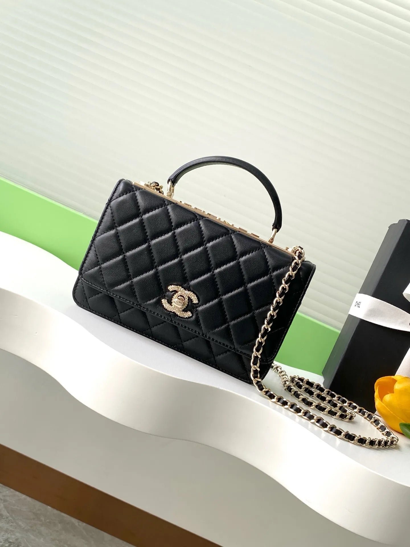 The bag is designed for modern versatility, functioning as a compact crossbody, shoulder bag, or an elegant clutch when the chain is tucked inside. Its organized interior includes six card slots, a central zip compartment, and a “secret” zip pocket under the flap, ensuring essentials are kept secure. The combination of soft leather and radiant gold-tone hardware, finished with the classic CC turn-lock closure, makes it a sophisticated statement piece suitable for both day and evening wear.